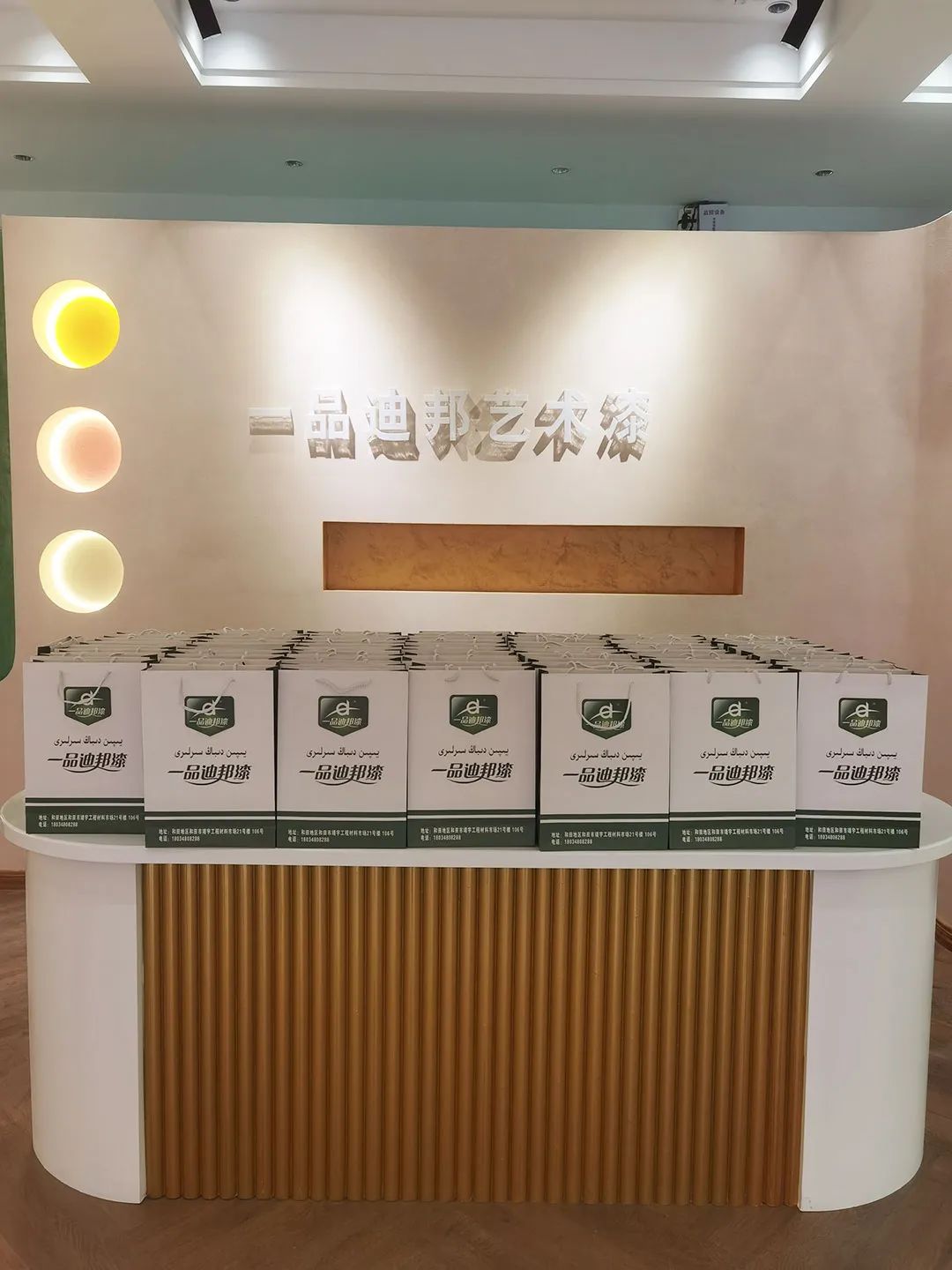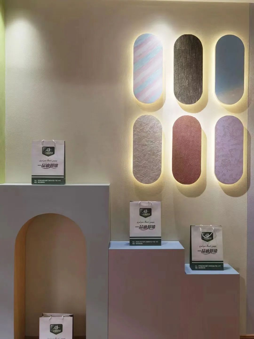 新疆和田一品迪邦藝術漆專賣店以全新的是視覺效果,繽紛多彩的顏色,實刷上墻身的產品展示,從視覺、觸覺和嗅覺,以最直觀、最真實的方式展示一品迪邦涂料產品的環保、耐用,美觀等性能。